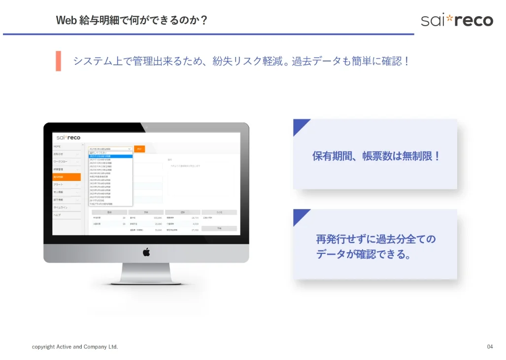 本資料では、Web給与明細の導入効果とサイレコWeb給与明細機能の特徴についてご紹介いたします。